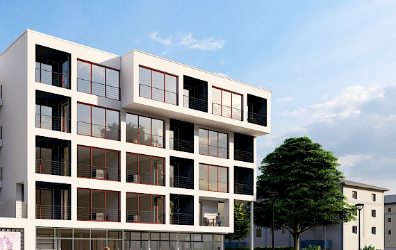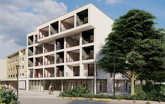Baugrundstück für ein städtisches Quaderhaus am Rathaussee, 25 Wohnungen, 1 Ladenlokal, 34 Stellplätze