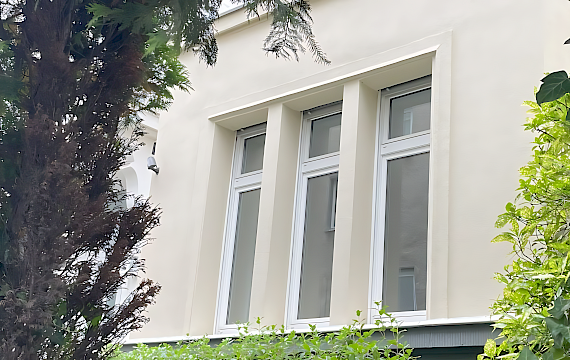 Boutiquevilla am Rhein. Mieterfrei. Bürofläche 500 m². Wohnung 90 m². Garten, Doppelgarage