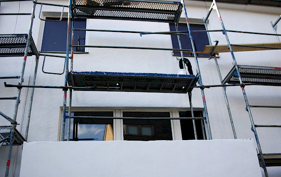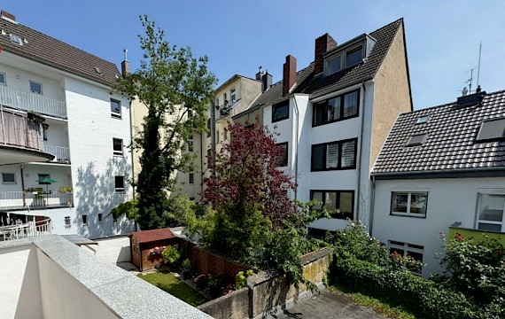 (3) Die rund 80 m² Balkonwohnung mit Sonnenbalkon im 1. Obergeschoss, derzeit 2 Zimmer, Küche, Duschbad kann um einen weiteren Raum ergänzt werden.