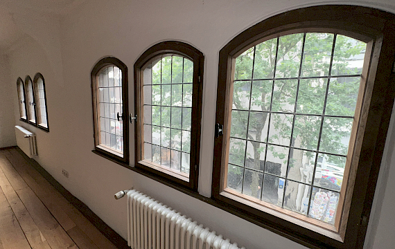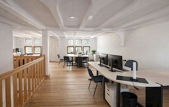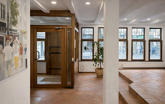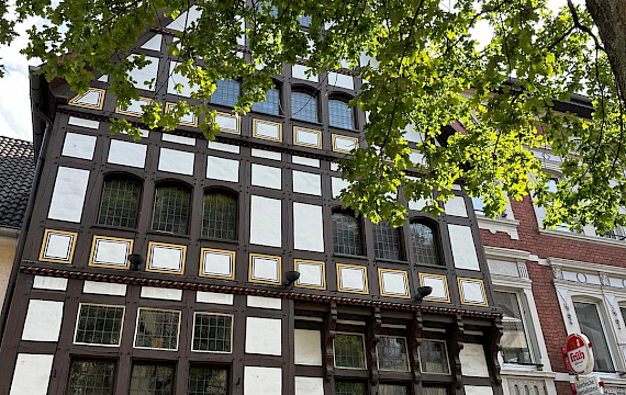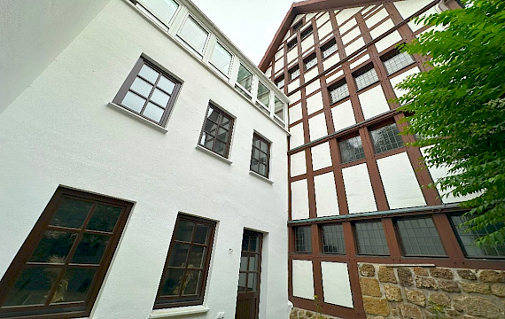 Im Vorderhaus ist es ein charmantes Fachwerkhaus aus der Renaissance, ein selten erhaltenes Herrschafts- und Gesindehaus an der historischen Stadtmauer.